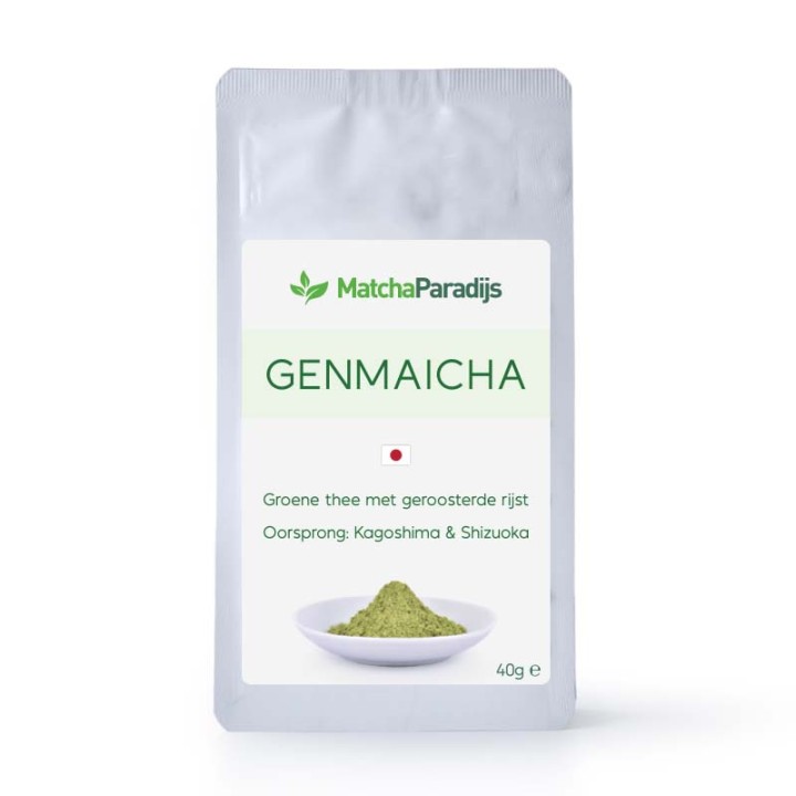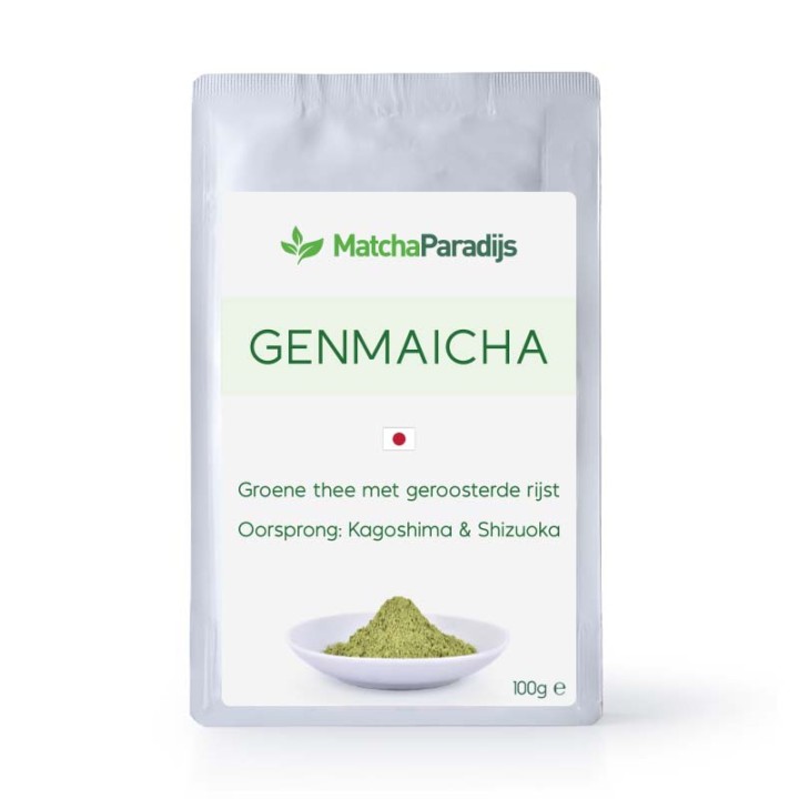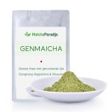 Genmaicha poeder is gemaakt van een mix van groene theepoeder (50%) en fijn gemalen Japans geroosterd rijstpoeder (50%). Het biedt zowel de zachte smaak van groene thee als het aroma van geroosterde rijst. De smaak is mild, het aroma is goed afgerond, en het is gemakkelijk te drinken. Zelfs als je geen fan bent van Matcha is dit een aanrader. De kleur van de thee is lichtgeel.